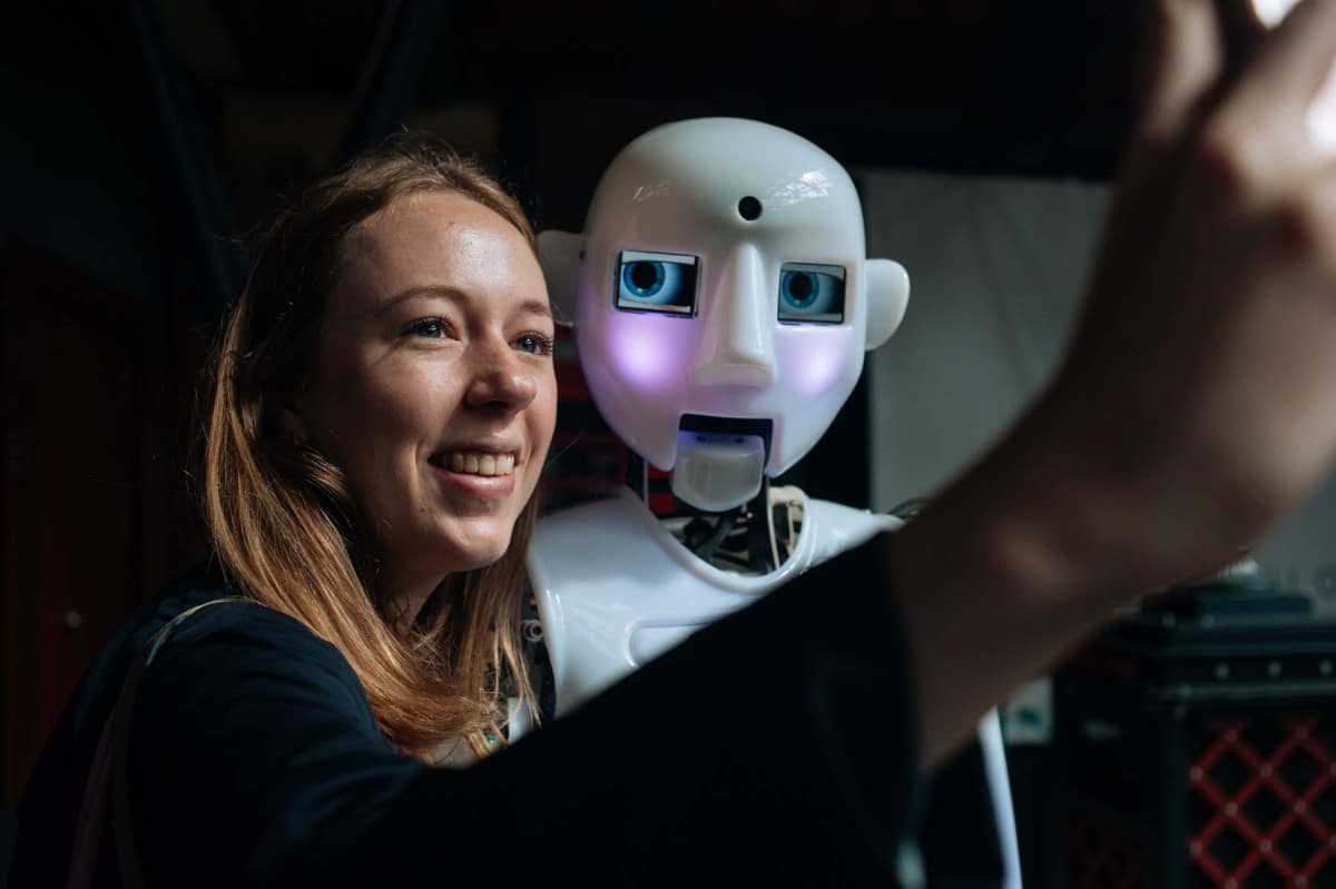 Mais comment exactement Ai-Da peut-elle reconnaître les gens et dessiner un beau portrait d’eux ? Ai-Da a intégré des caméras dans ses globes oculaires qui lui permettront d’établir un contact visuel avec vous et de vous suivre Mona Lisa dans la pièce avec son regard. « La vision par ordinateur d’Ai-Da repose sur l’IA. Cela signifie qu’elle peut continuer à suivre certains visages et même imiter votre expression faciale. L’étage est réservé à Marcus Hold, ingénieur de conception et de production chez Engineered Arts.